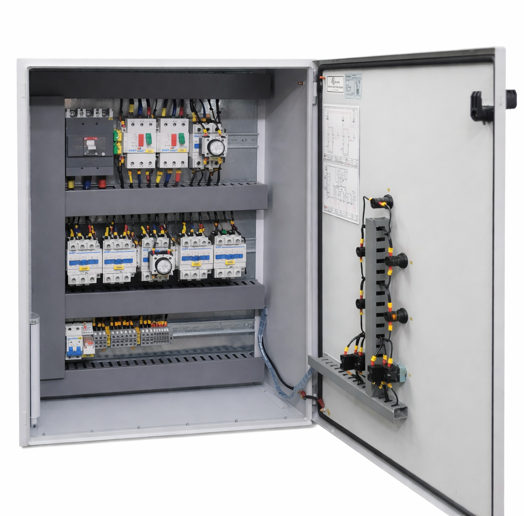 gabinete para alternación y respaldo de 6hp con alternación y respaldo de 2hp además de arranque directo, ejemplo de la adaptabilidad de nuestros desarrollos